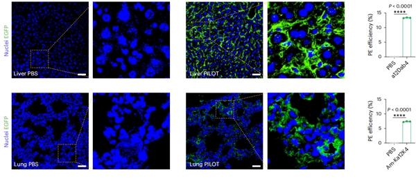 图2. Liver和Lung PILOT LNP介导肝和肺特异性先导编辑。