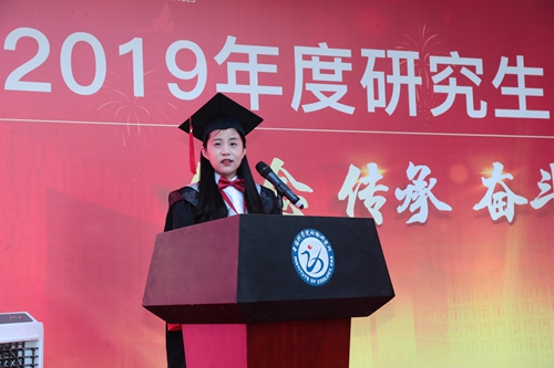 膜生物学国家重点实验室薛媛媛同学作为毕业生代表发言。她首先代表全体毕业生向辛勤付出的导师们表达最真诚、最恳切的感激与敬意!她表示我们要做知识的传播者,让更多的人们了解我们所做的科学研究,让更多的科研成果服务于我们的社会,为我们的社会贡献更多的正能量。今日,在中国科研水平的至高学府挥洒青春,修身治学;明日,成为科技创新的执行者,为我国建设世界科技强国、为中国梦的实现而奋斗终身。