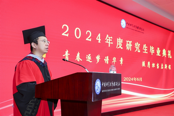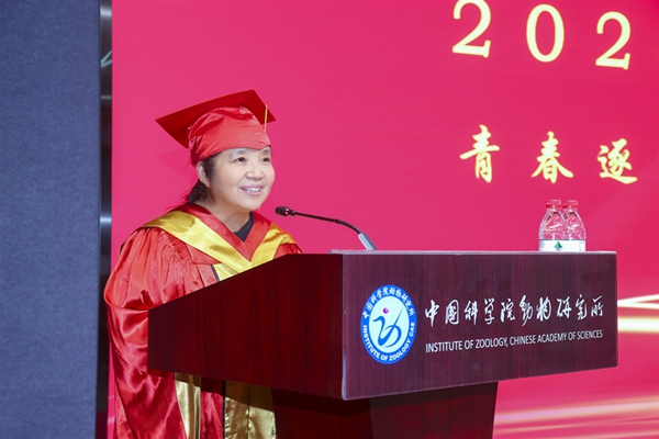 首先乔格侠发表致辞,她代表动物所全体师生向2024届毕业生致以最热烈的祝贺,向悉心栽培学生的导师、支持关爱学生的父母和家人致以衷心的感谢。她回顾了动物所为毕业生搭载成长舞台、毕业生见证动物所的高质量发展的历程,肯定了同学们的优异成绩,也给大家提出了殷切的期望和要求。希望同学们在今后的道路上坚定信念不动摇、坚持进取不懈怠、坚持乐观不放弃,在未来的工作岗位取得新的成就,创造新的辉煌!